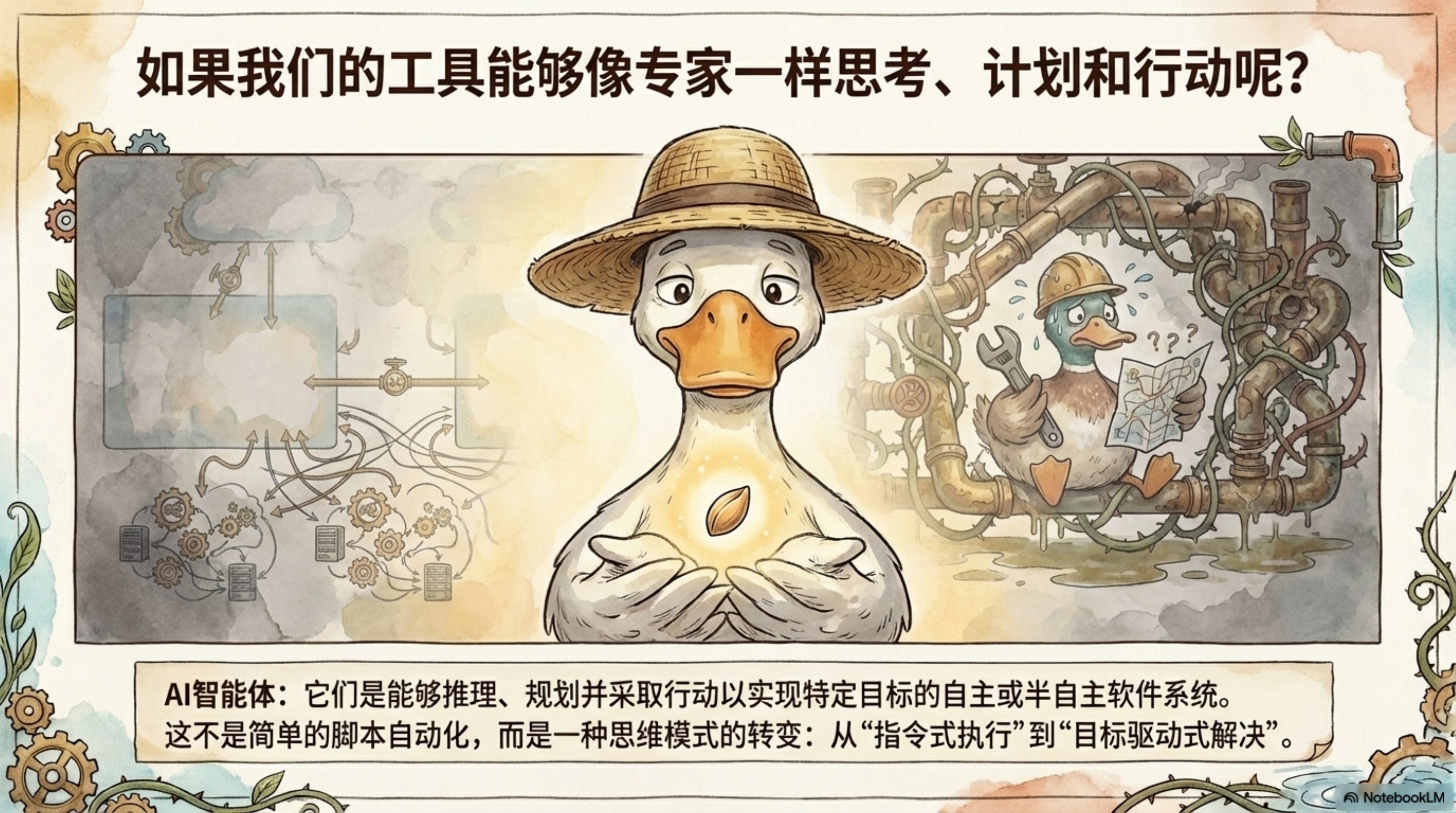 - 智能体生长循环:接收目标 → 推理与规划 → 调用工具 → 获得新信息并再次循环
