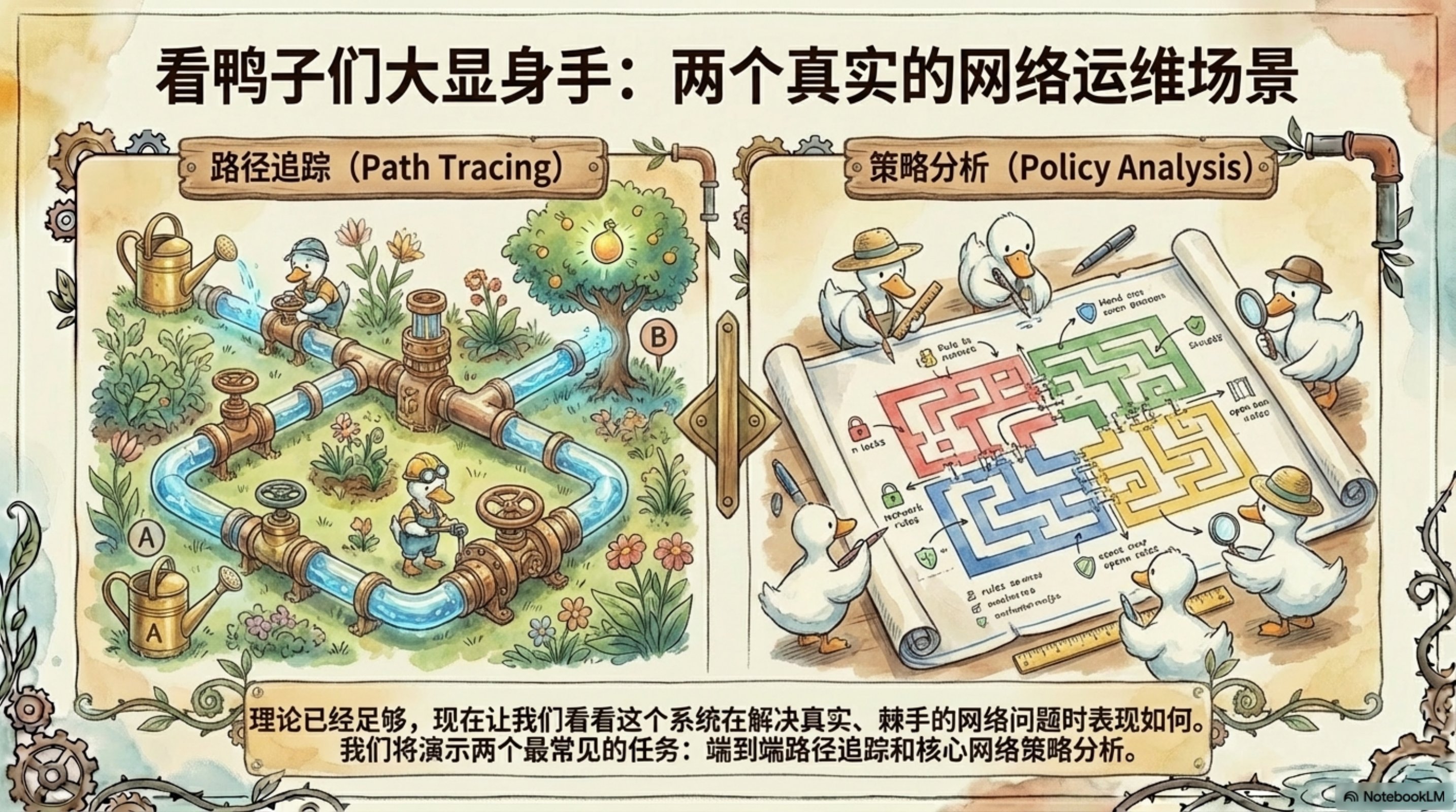 - 三大核心能力:网络拓扑理解、路径分析与故障排查、安全策略审计