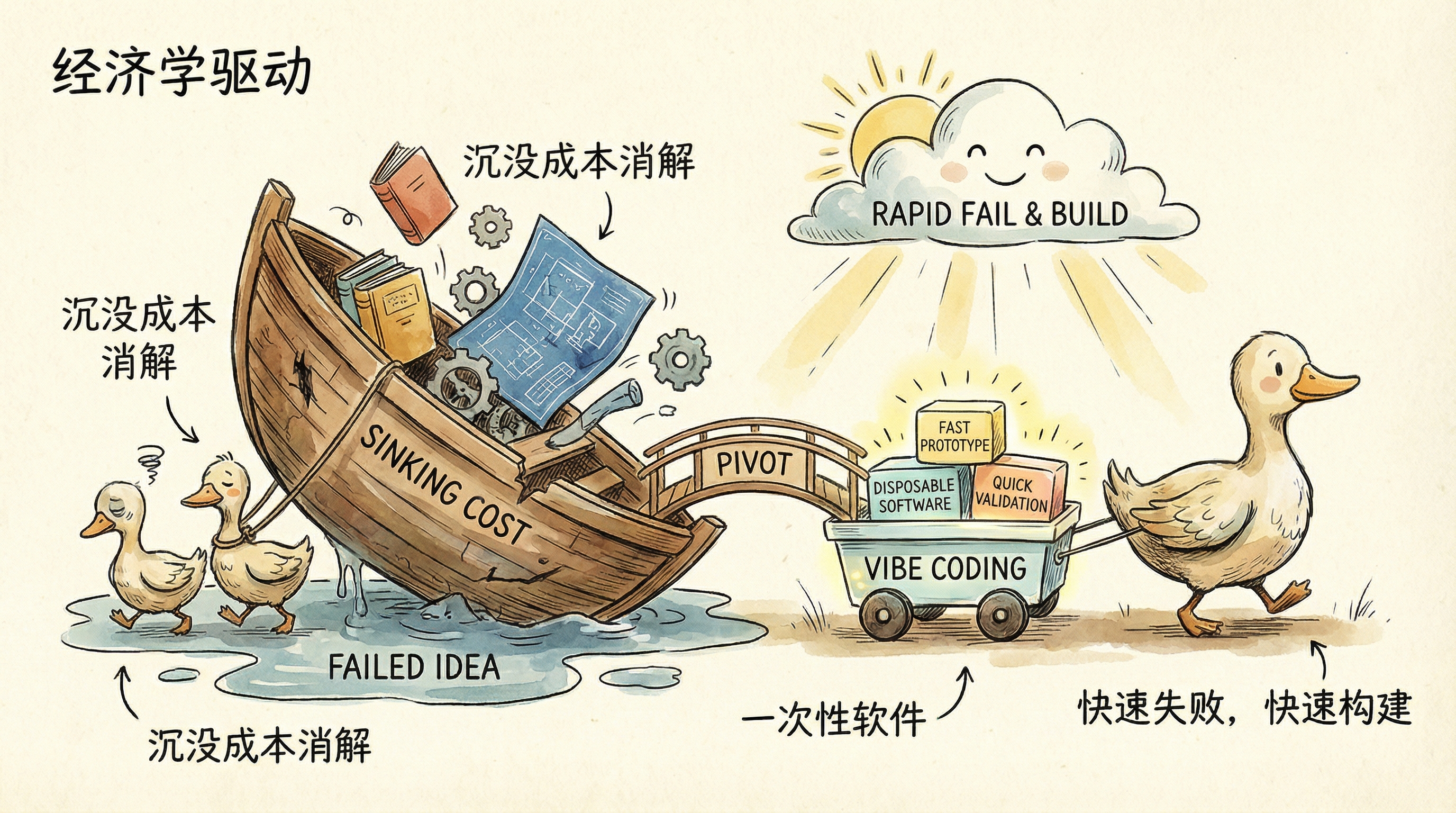- 经济学驱动 - 沉没成本消解,快速失败快速构建成为新常态