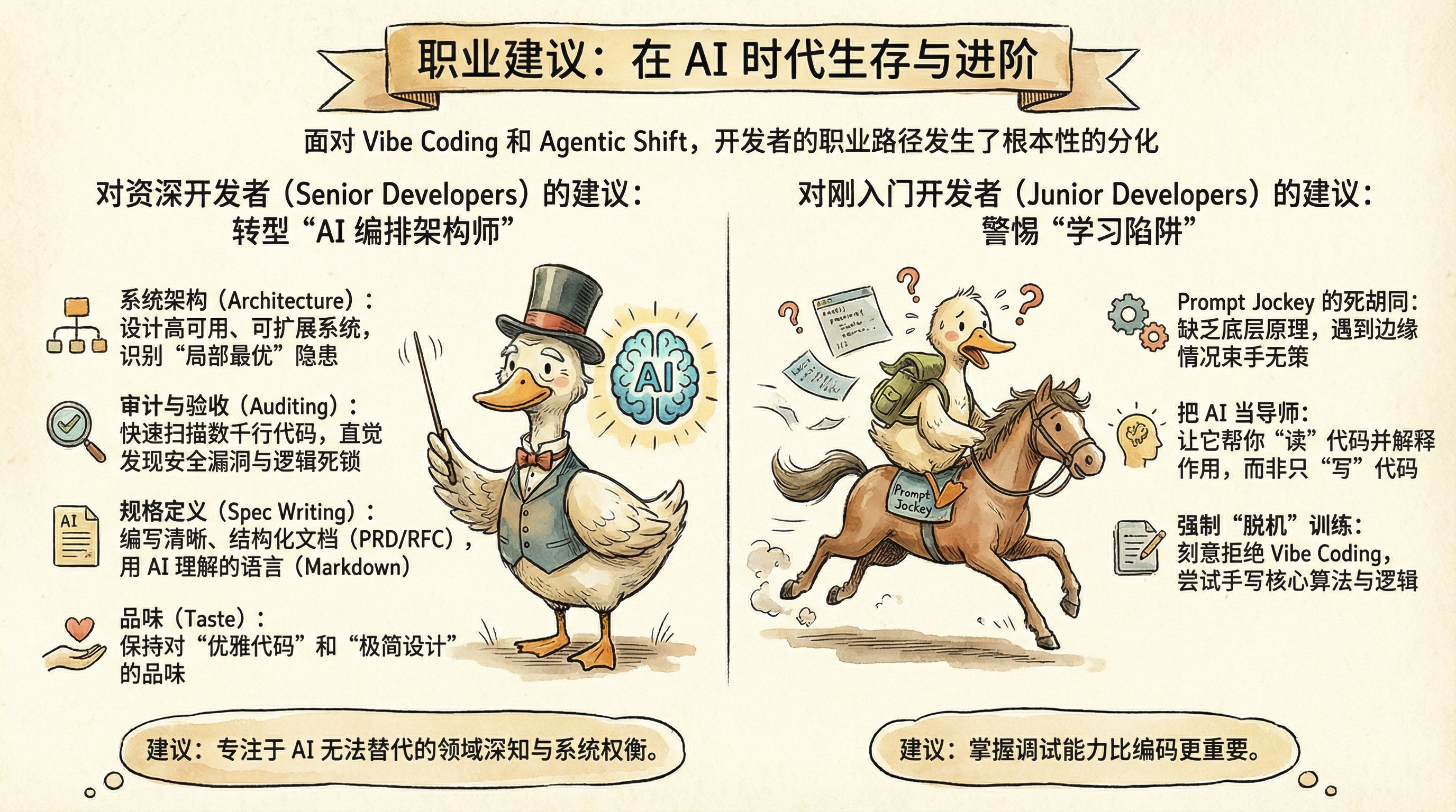 - 职业转型 - 资深开发者转向架构师,初级开发者以 AI 为导师